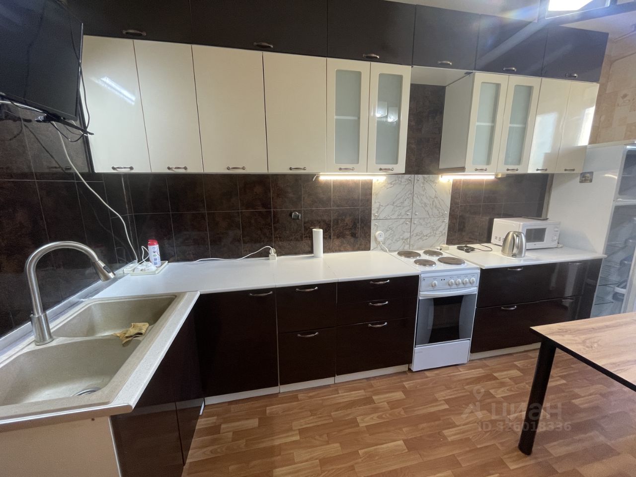 В квартире большой шкаф, кладовка с полками и большая кухня, новая кровать и новый матрас, 2 телевизора на кухне и в комнате, микроволновка, стиральная машина, утепленный балкон