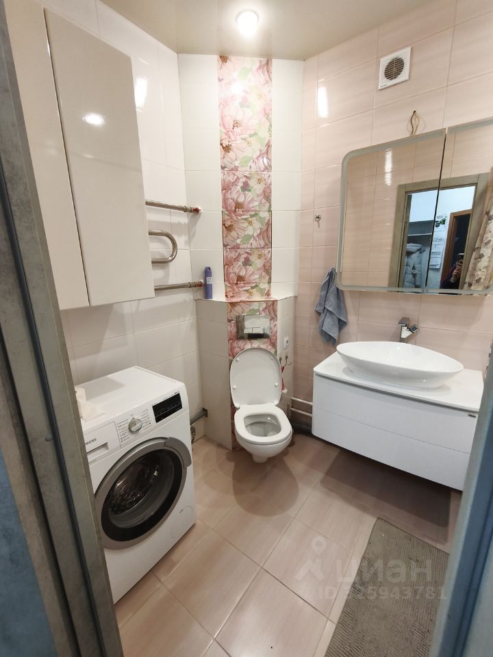 Санузел совмещенный, оснащен современной сантехникой и стиральной машиной. Из окон открывается вид на двор с открытой парковкой. Балкон застеклен, что позволяет использовать его круглый год.