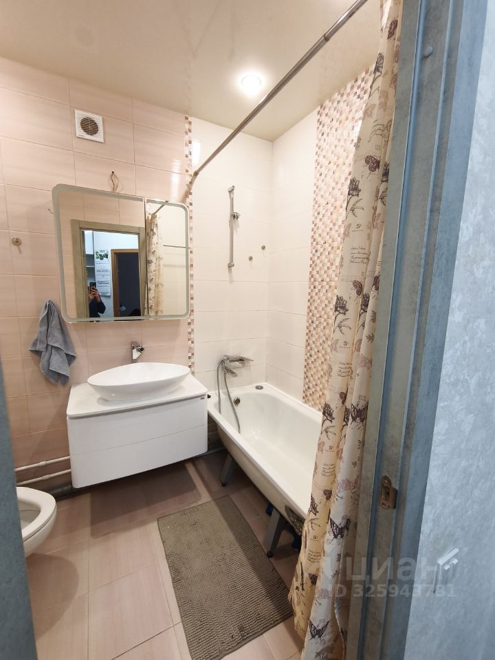 Санузел совмещенный, оснащен современной сантехникой и стиральной машиной. Из окон открывается вид на двор с открытой парковкой. Балкон застеклен, что позволяет использовать его круглый год.