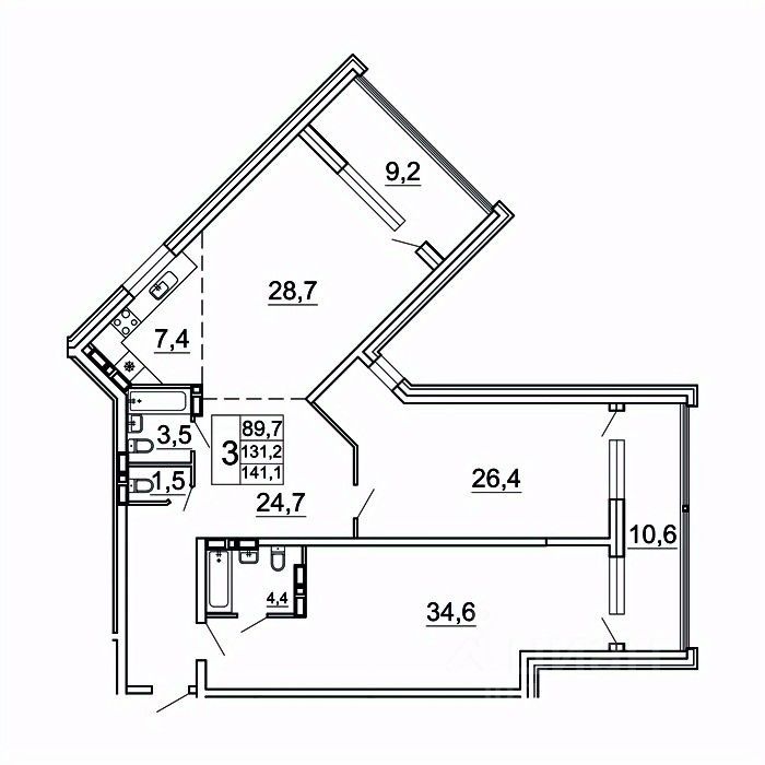 продам 3-к, Лесная, 1в/121 220 176 ₽