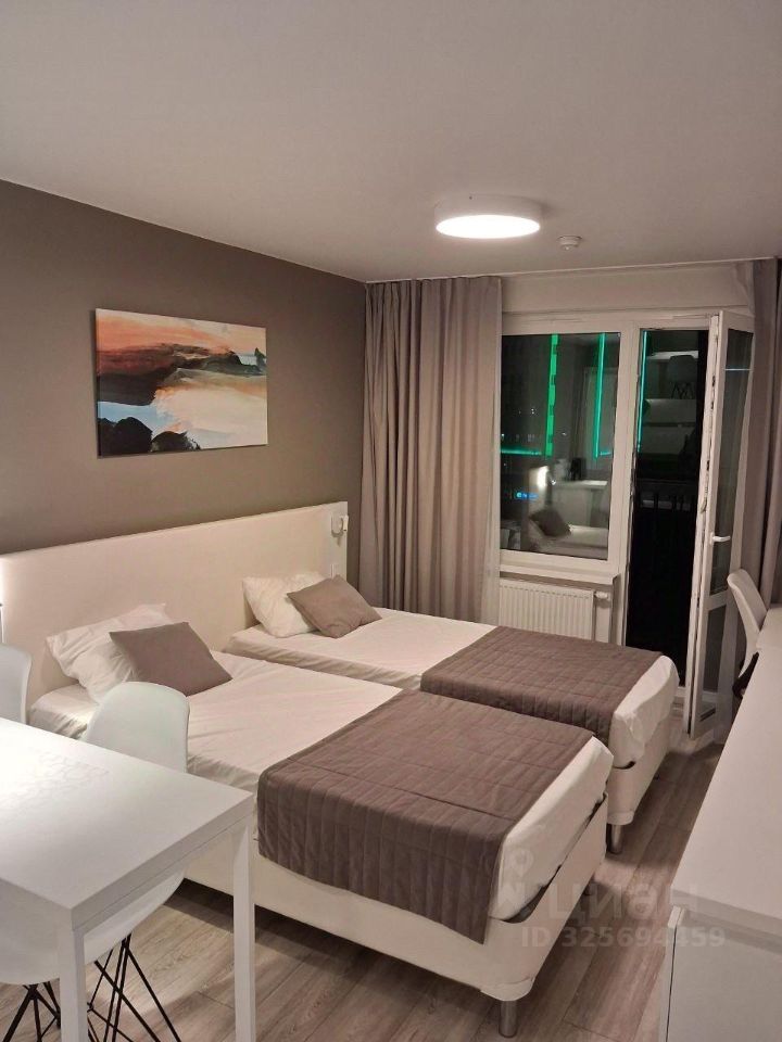 Сдается уютная просторная видовая студия 23 кв.м. (4 этаж) в новом Апарт-отеле VALO Hotel City с выходом на балкон и прямым спуском и выходом к фитнес-центру с бассейном.