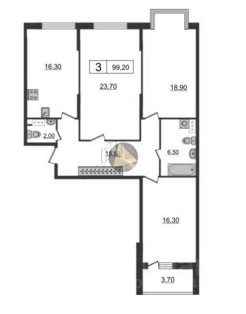 О квартире: - Квартира находится на 8 этаже 9-этажного дома - Общая площадь квартиры 99.2 м2 - Уютная спальня 16.30 м2 - Просторная гостиная 23.70 м2 - Детская комната 18.90 м2 - Кухня 16.30 м2 - Раздельный санузел 6.50 + 2.0 м2 - Застекленный балкон 3,70 м2