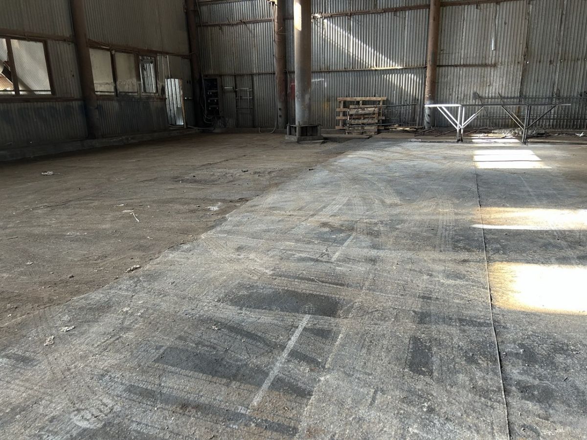 Пол бетонный, высота помещения -10 м, высота ворот - 4,6 м, электричество-50 кВт . Коммуникаций в здании нет.