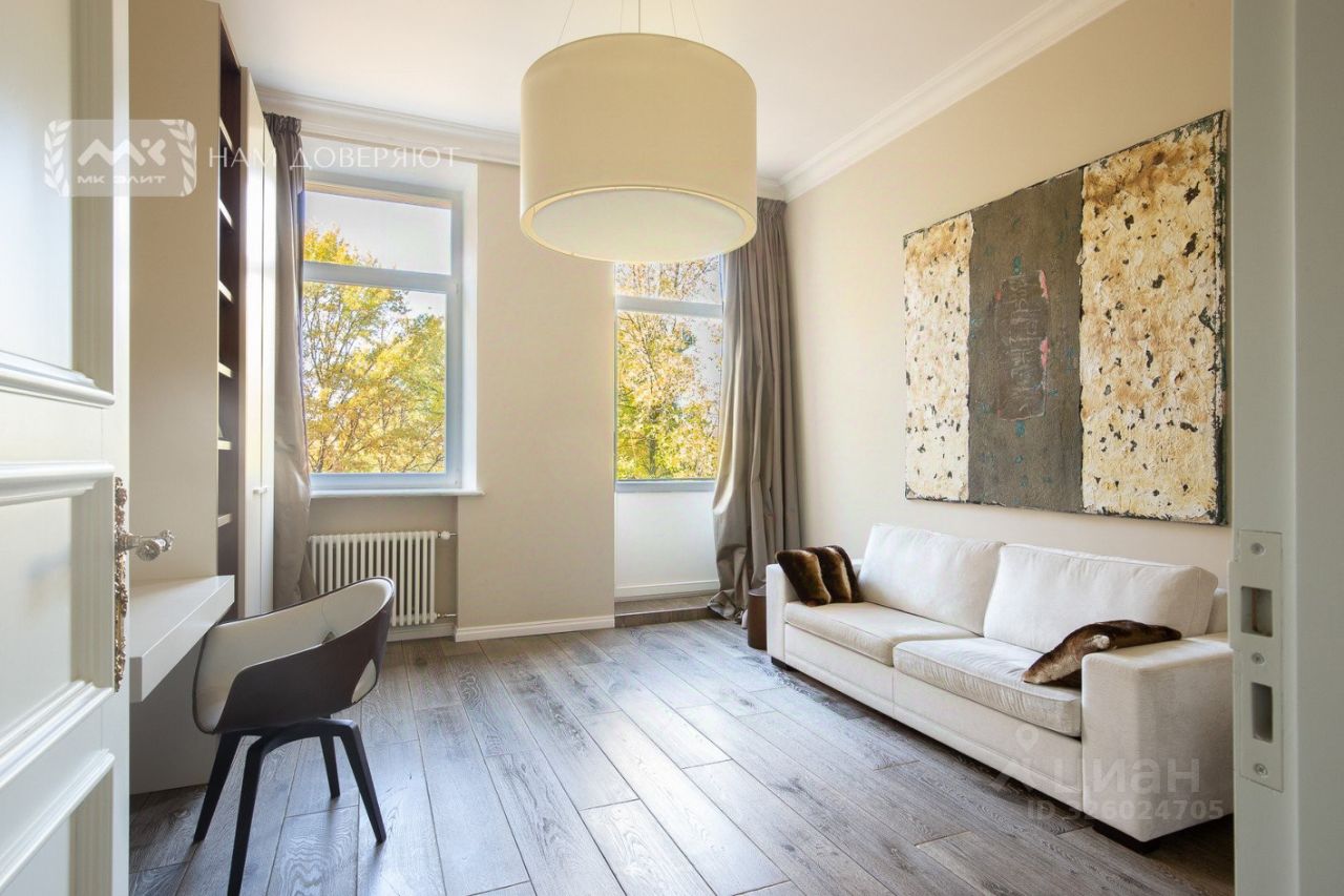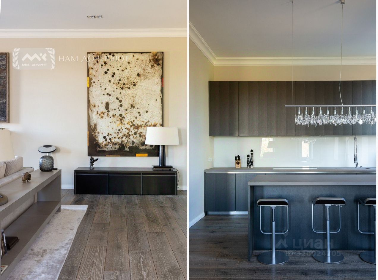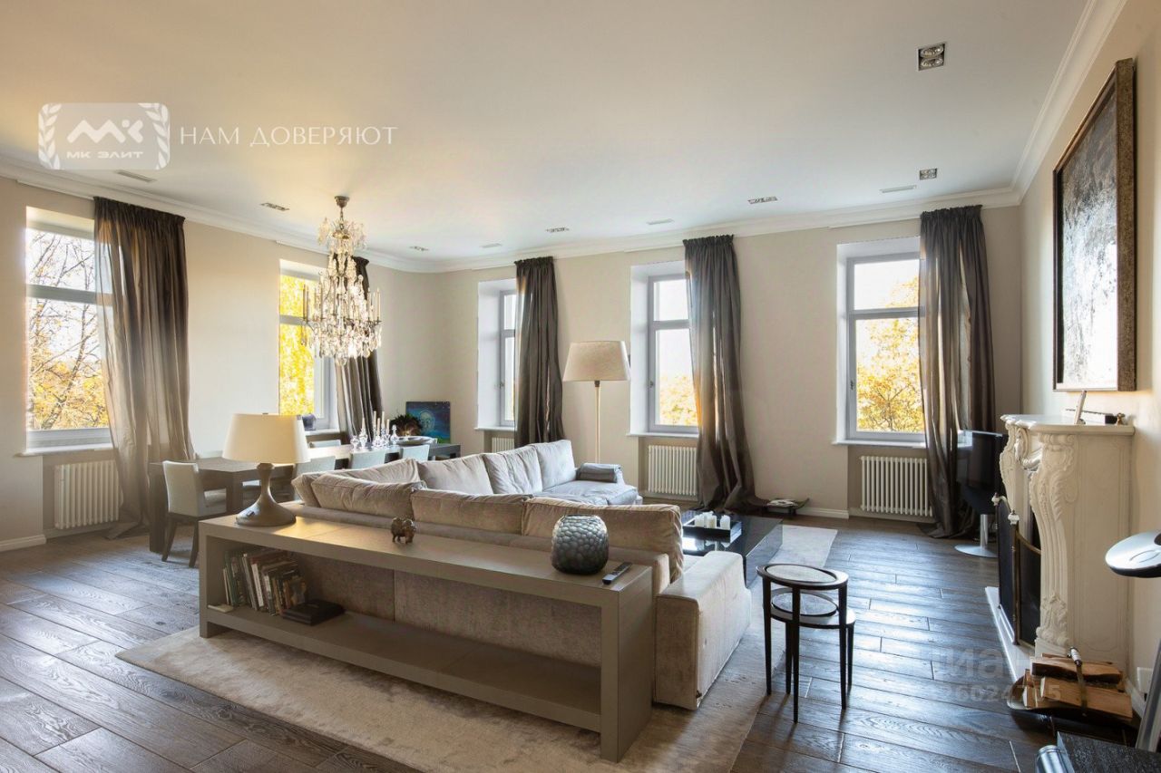 В отделке использованы премиальные натуральные материалы. Квартира обставлена эксклюзивной мебелью и укомплектована дорогой бытовой техникой (Miele).