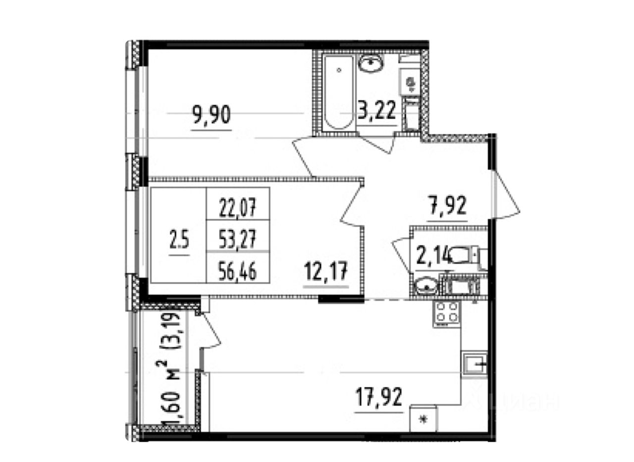 Продается 2-х комнатная квартира в ЖК Черная речка. Отличная европланировка. Второй этаж на улицу.