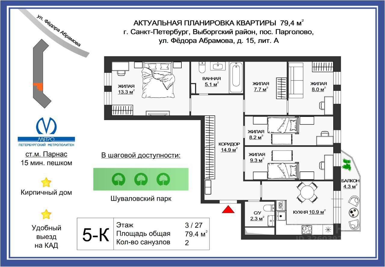 Продаётся просторная квартира с дизайнерским зонированием в пять функциональных зон в современном ЖК Северная Долина у метро Парнас.