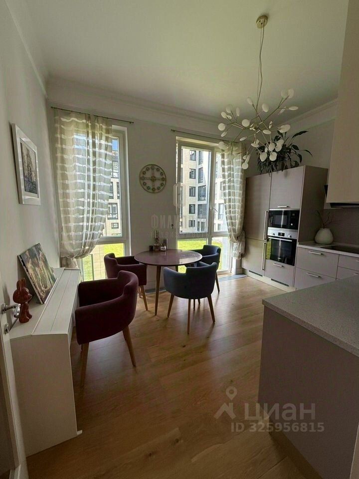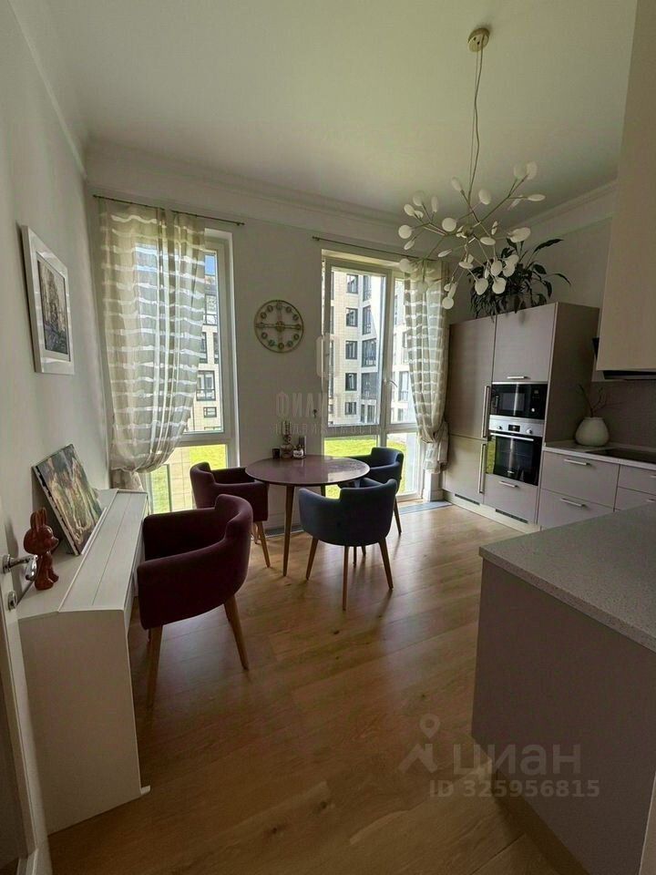 Современный дизайнерский ремонт выполнен в светлых, натуральных оттенках. Квартира полностью готова к проживанию — вся мебель и техника остаются покупателю.