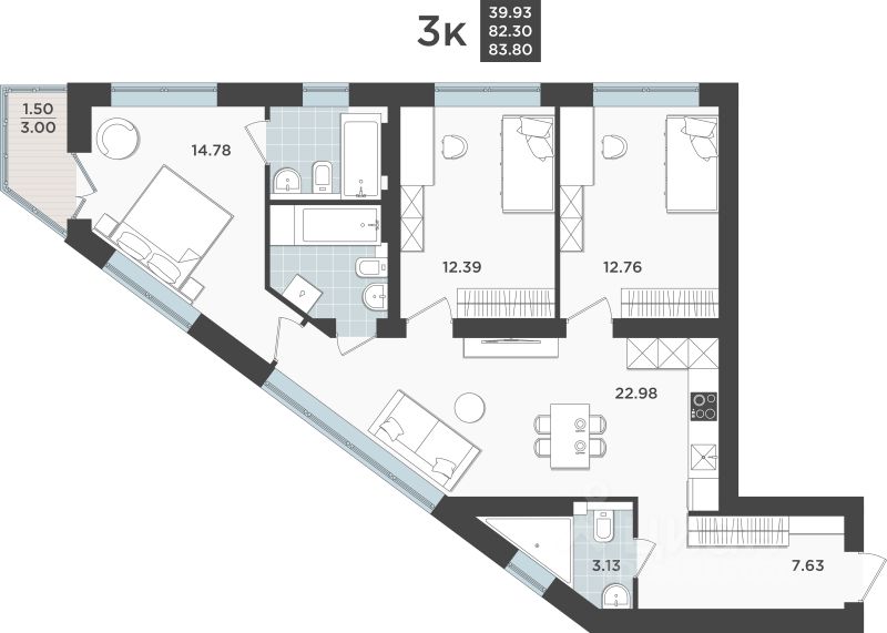 Общая площадь82,3 м2