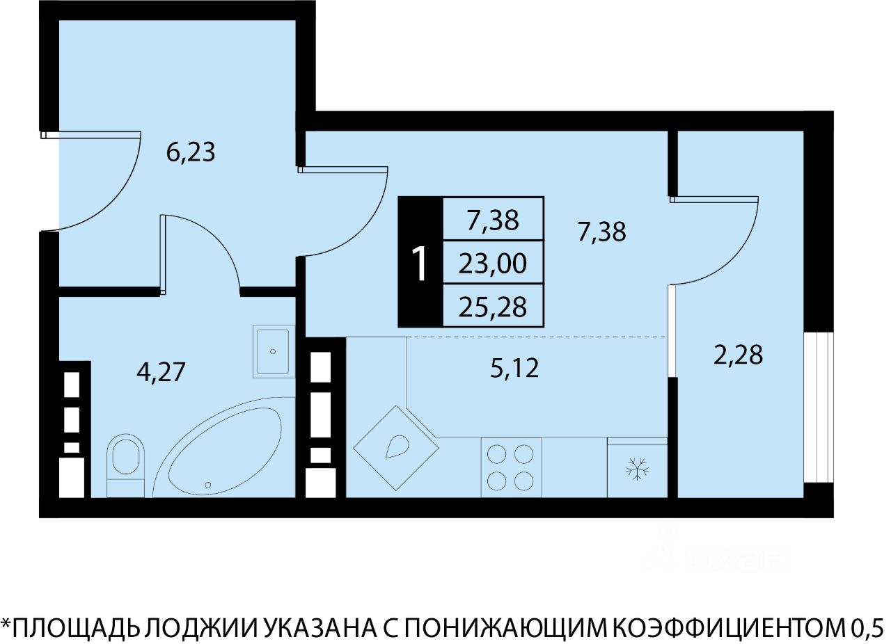 Общая площадь25,28 м2