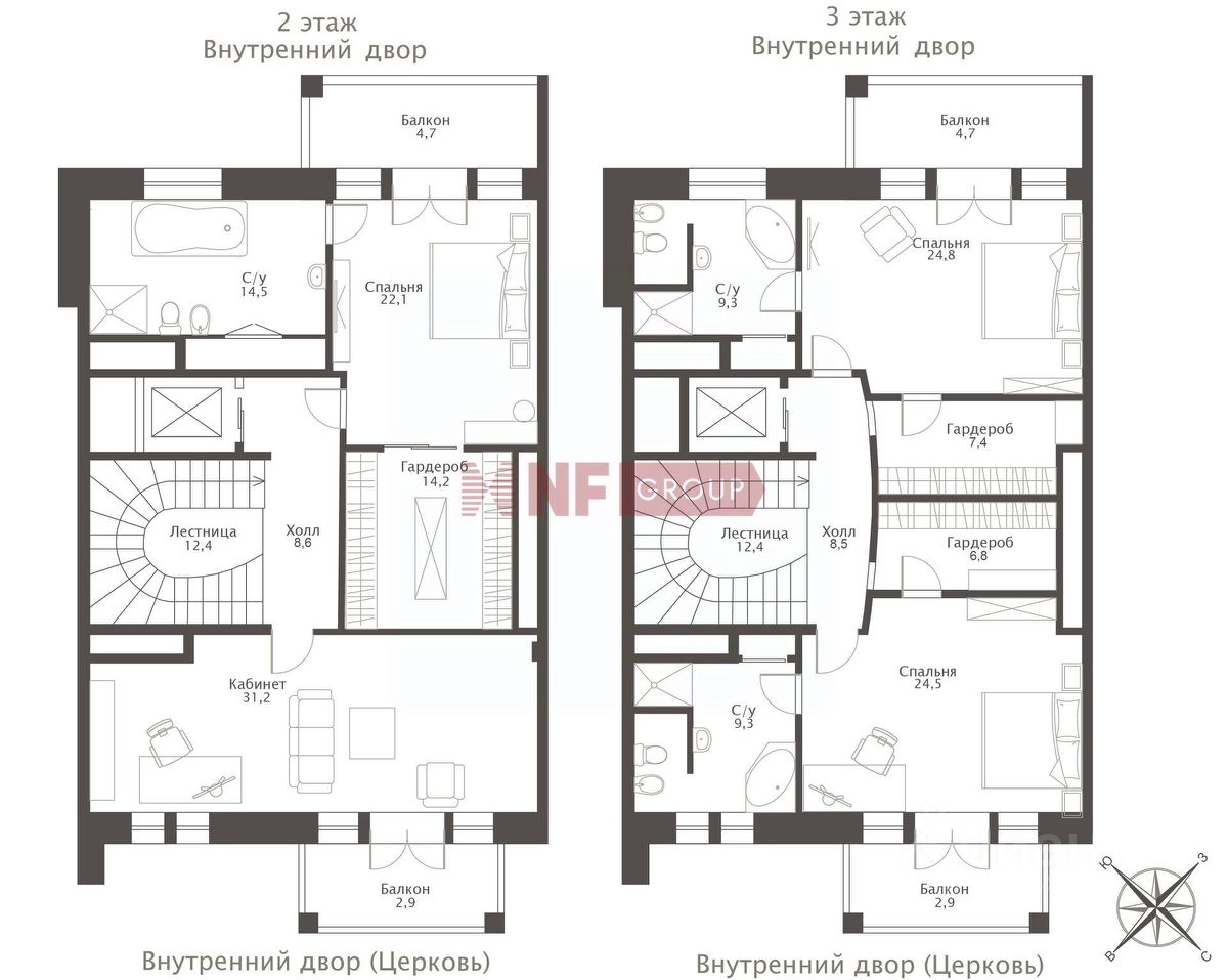 Лот: 96090. В продаже таунхаус с отделкой в клубном жилом комплексе ''Три Тополя'' во 2-м Вражском переулке на Плющихе. Планировка: гостиная, кухня-столовая, четыре спальни с ванными комнатами, кабинет, 3 гостевых санузла, гардеробные, хозяйственные помещения. В таунхаусе 4 уровня (2 наземных и 2 подземных). Выполнена отделка с применением гранита, мрамора, мозаики из натуральных и синтетических камней. Таунхаус оснащен мебелью премиального уровня и полностью готов к проживанию, предусмотрен лифт. Высота потолков: до 10 м. На подземном уровне расположена парковка на 5 автомобилей. Комплекс ''Три тополя'' расположен в тихом месте, вдали от шумных магистралей, рядом с посольствами, памятниками архитектуры и зелёными скверами. Территория благоустроена, огорожена и охраняется. Удобный выезд на набережные и Садовое кольцо, пешая доступность парка Новодевичьи пруды, сквера Девичьего поля.