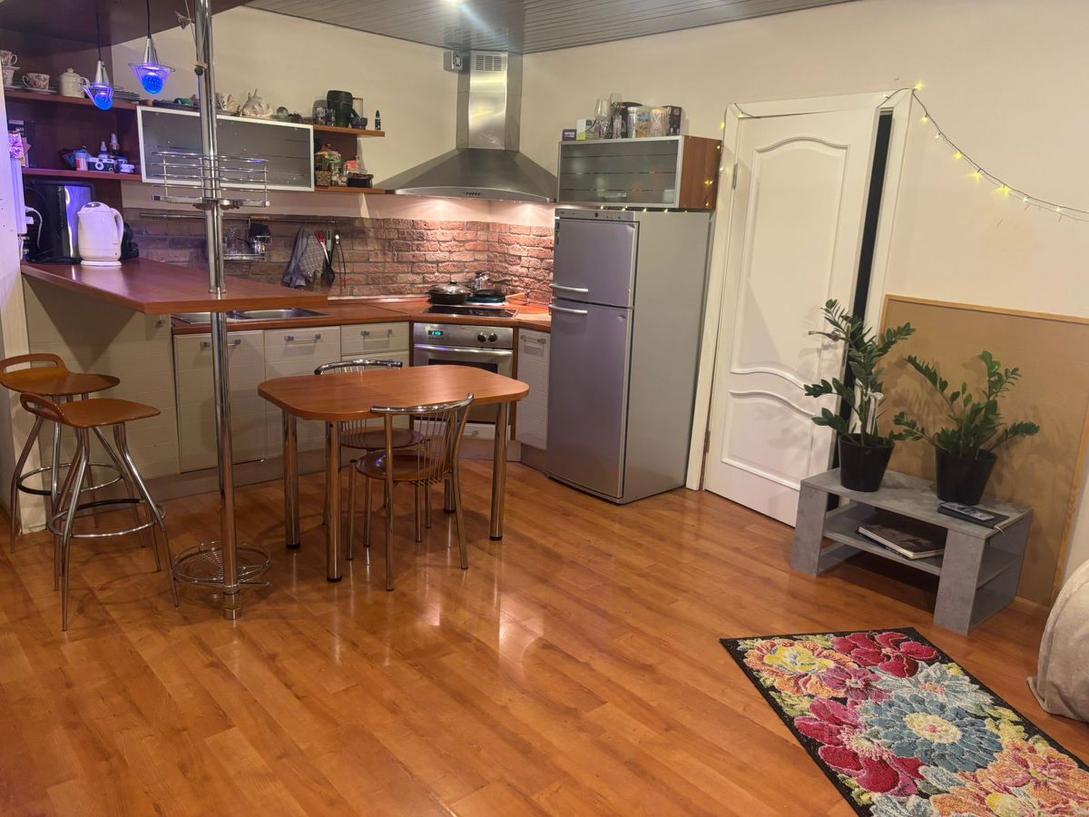 Просторная кухня-гостиная, отдельная спальня, лоджия, совмещённый санузел. Окна во двор, солнечная сторона — в квартире тихо даже с открытыми окнами.