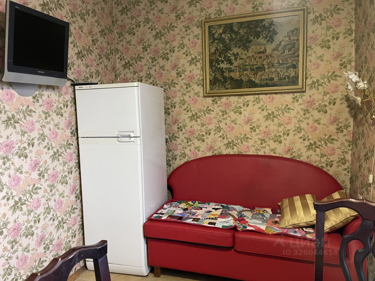 Просторная комната, оборудованная мебелью и бытовой техникой