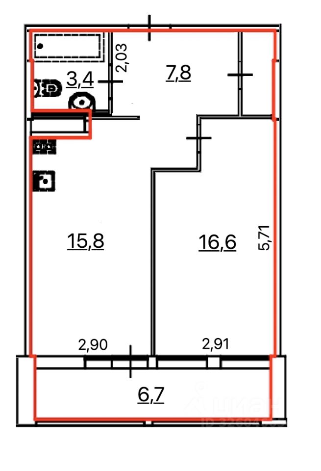 Площадь квартиры указана без учета просторной застекленной лоджии. Площадь лоджии 6.7 кв.м.