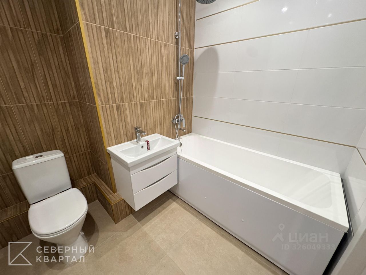 В квартире выполнена отделка ''Морошка'': стены оклеены обоями теплого оттенка(под покраску), на полу - ламинат, потолки - натяжные, в санузлах на полу и стенах керамическая плитка, установлена качественная сантехника, на балконе пол выложен плитой, потолок окрашен, установлены межкомнатные двери и качественная металлическая дверь. Квартира полностью готова к проживанию.