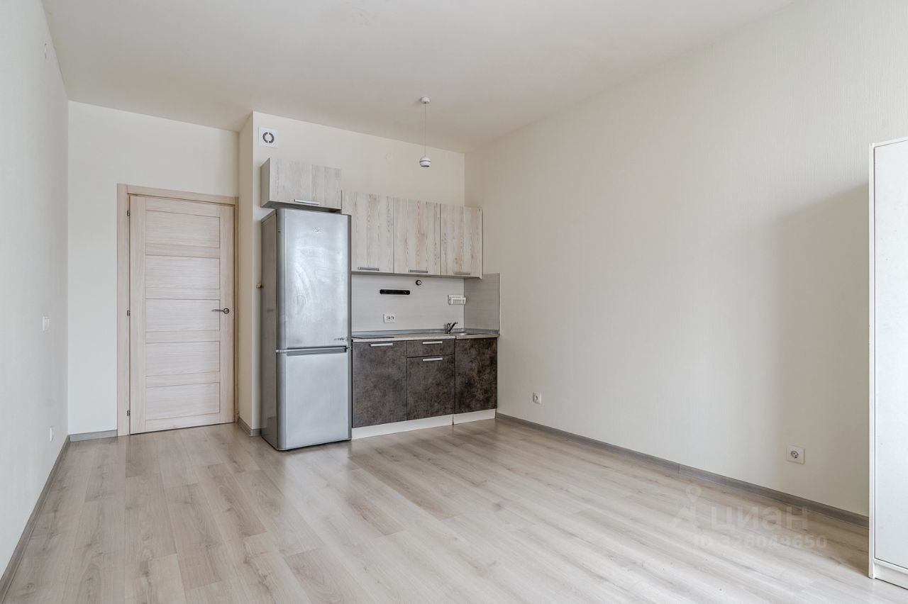 В студии оборудована кухня со встроенной варочной поверхностью, есть холодильник, гардеробный шкаф, стиральная машина, прихожая.