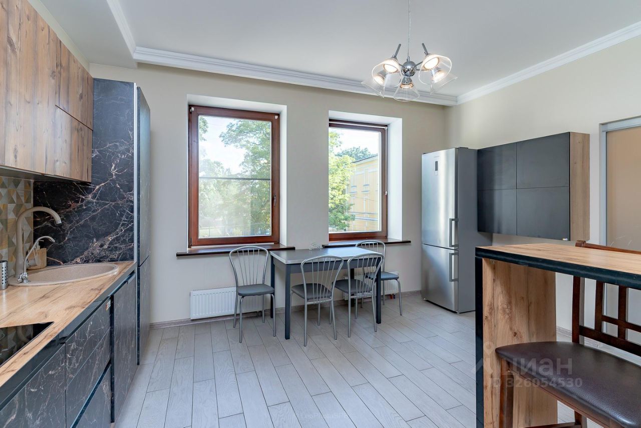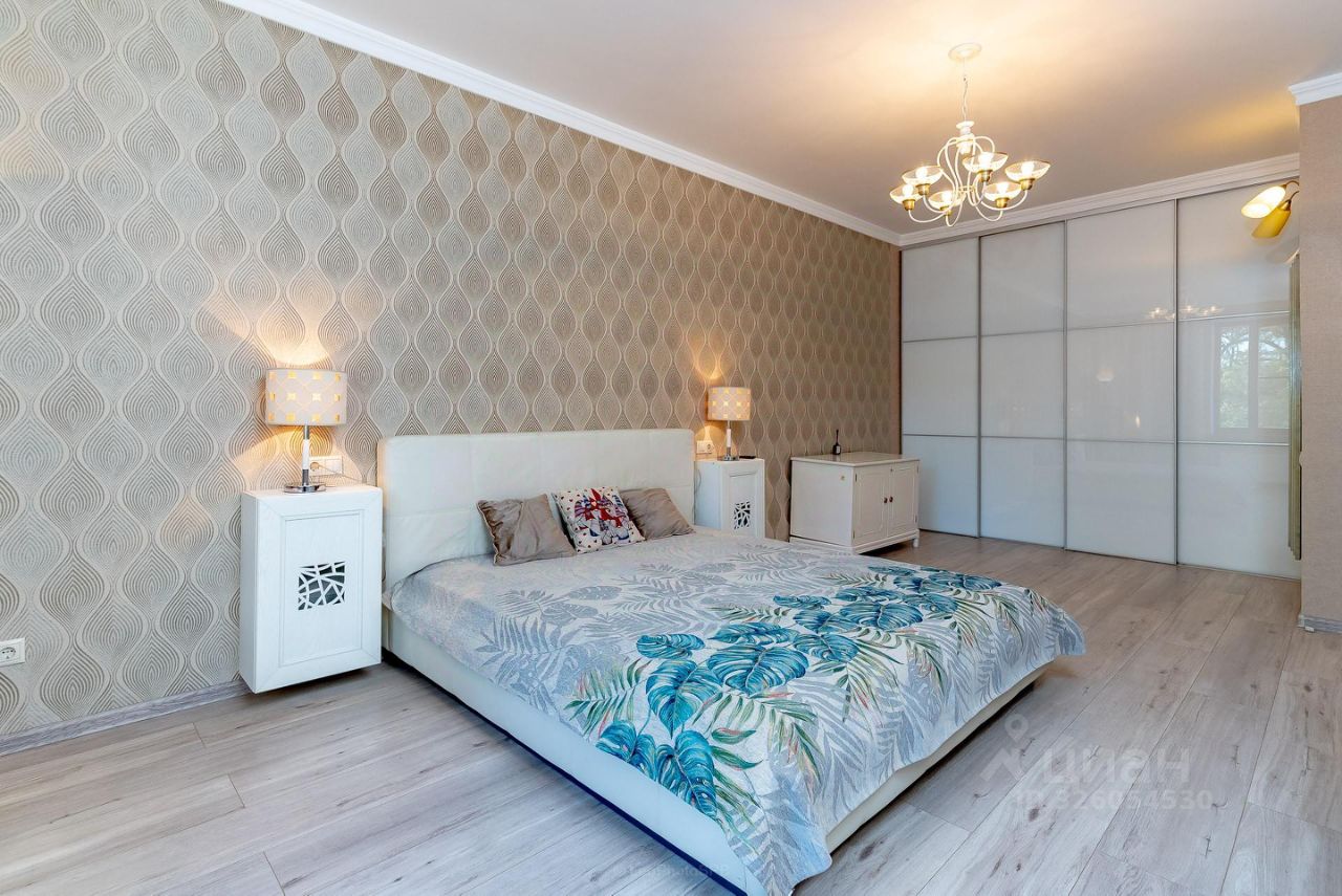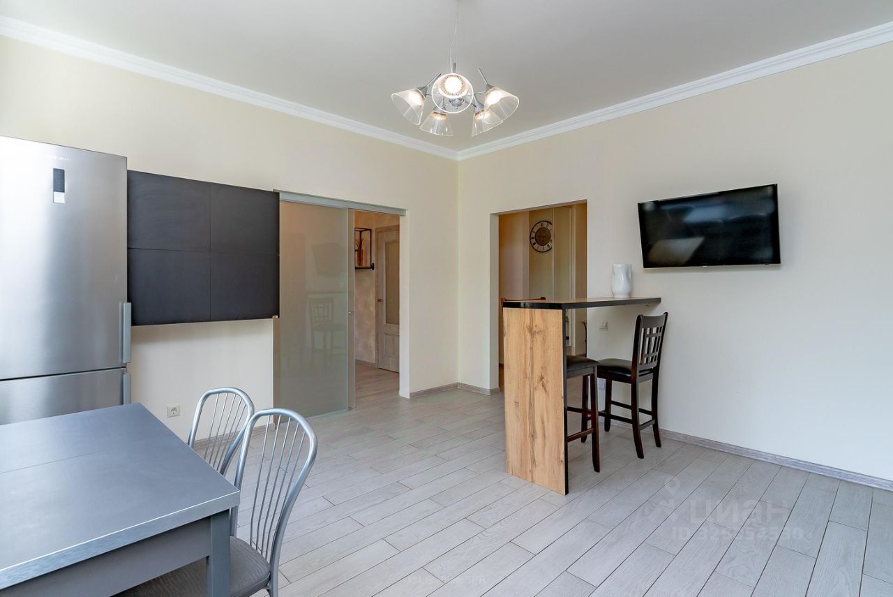 Квартира состоит из двух изолированных комнат, большой кухни-столовой, разделенной на две зоны (обеденная и барная), просторный холл. Два раздельных санузла (один с полноценной ванной и гостевой санузел). Гардеробная. Полы с подогревом (кухня-столовая, холл, санузлы).