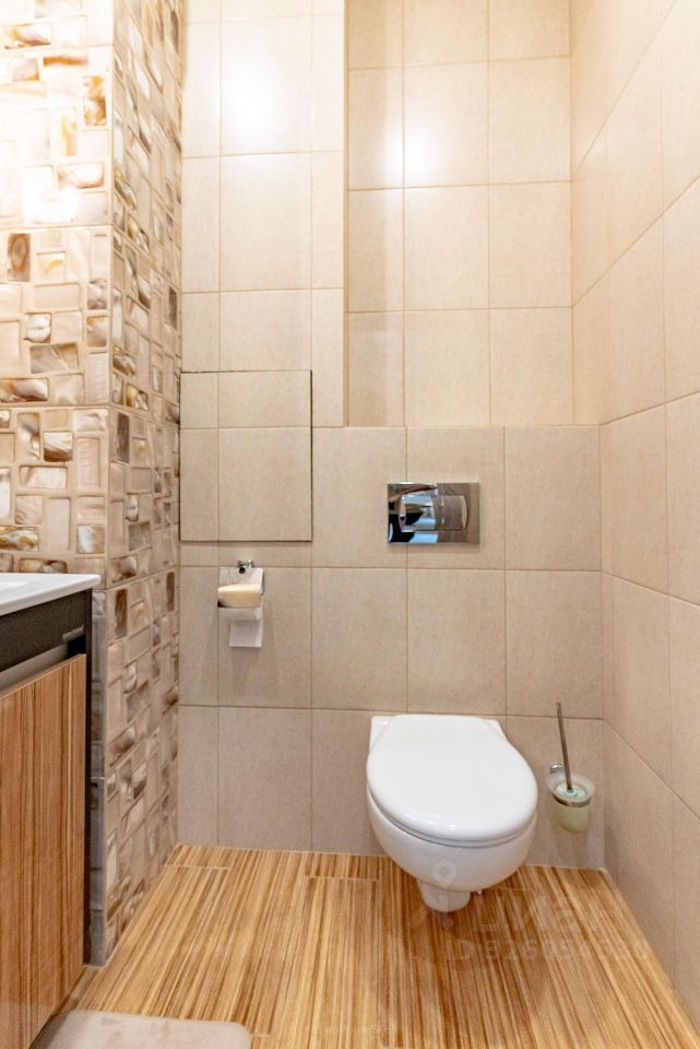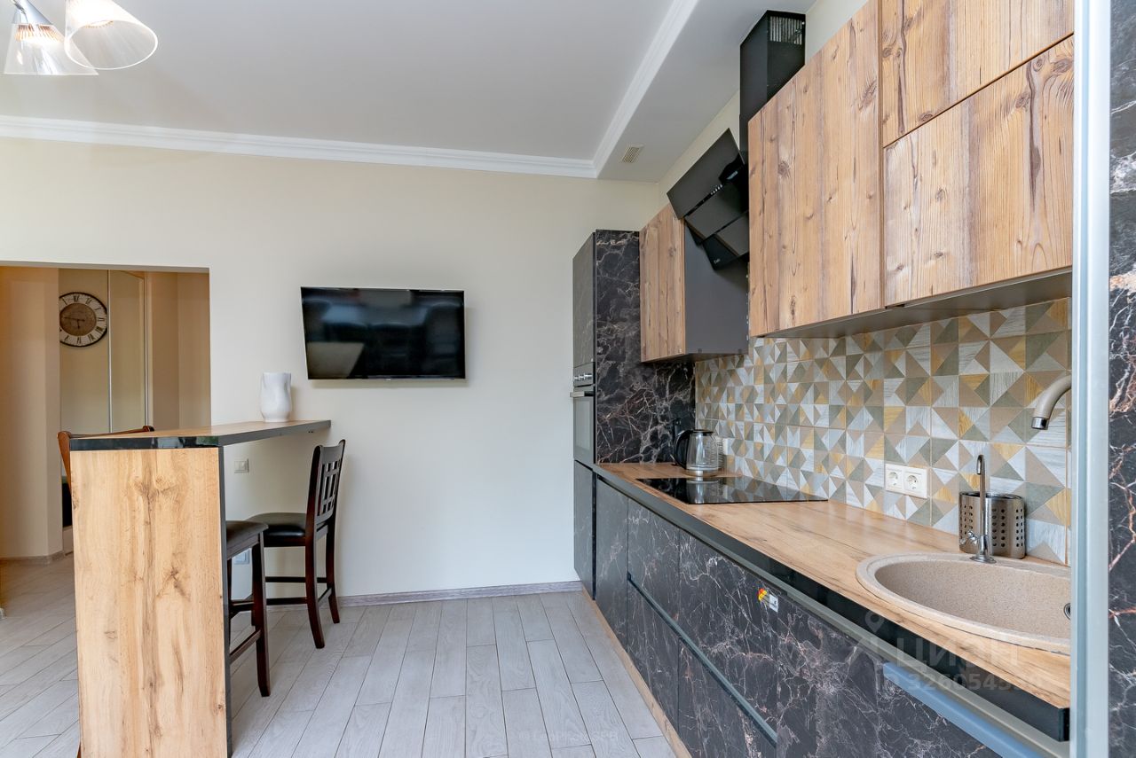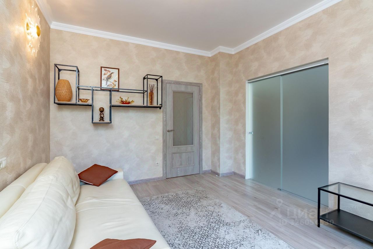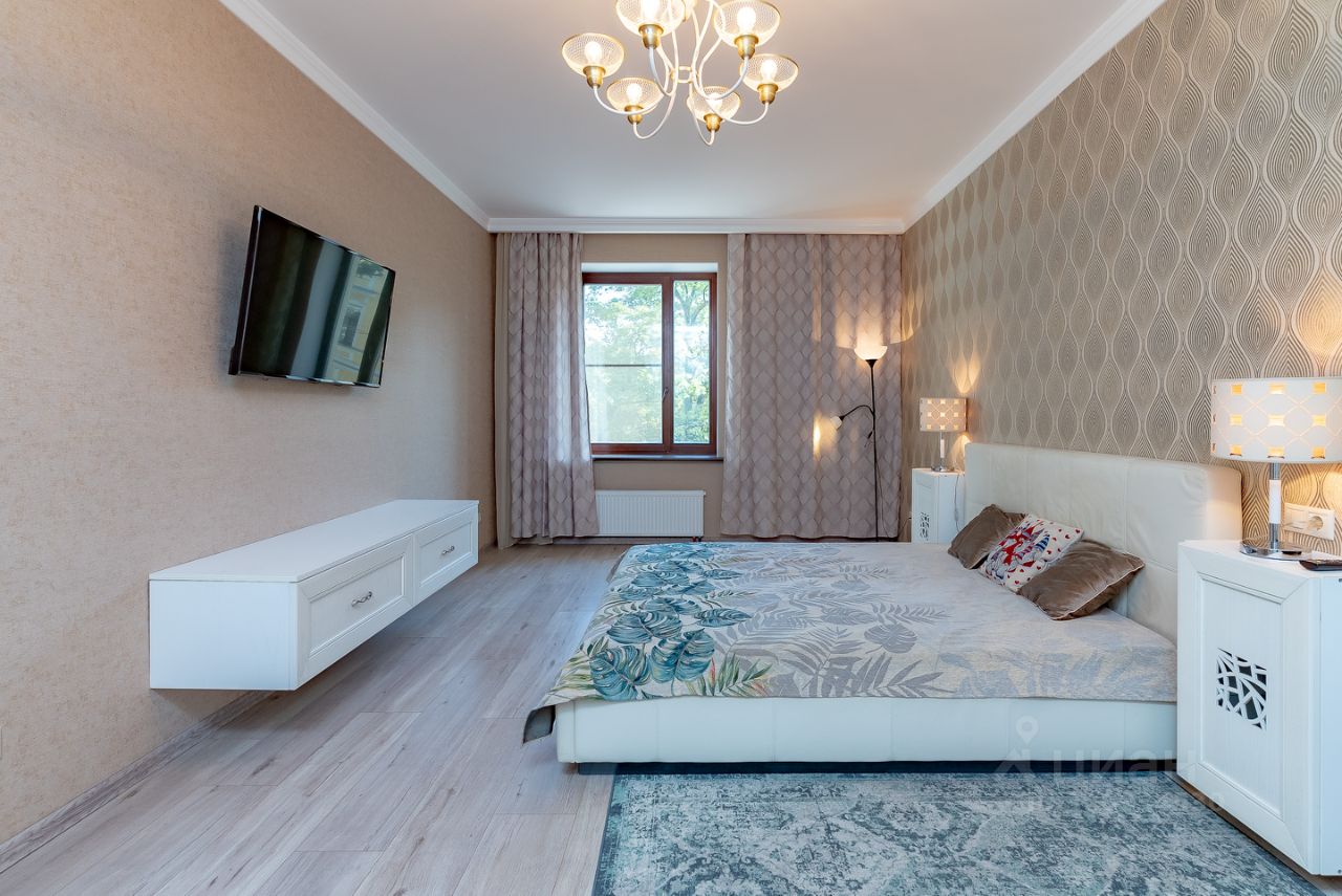 Квартира состоит из двух изолированных комнат, большой кухни-столовой, разделенной на две зоны (обеденная и барная), просторный холл. Два раздельных санузла (один с полноценной ванной и гостевой санузел). Гардеробная. Полы с подогревом (кухня-столовая, холл, санузлы).
