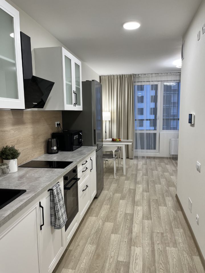 Квартира сдается впервые и оснащена абсолютно новой мебелью, бытовой техникой, посудой и текстилем (Ikea). В квартире сделано грамотное зонирование: обеденная, рабочая, гардеробная зоны и пространство для отдыха и сна. Для вашего комфорта в жилом помещении оборудована оконная приточная вентиляция, регулировка температуры с помощью термостатического клапана и просторный санузел (4.7 м), который имеет полноценную ванну (170 см). Бесшумные лифты Otis (пассажирский, грузовой и платформенный подъемник). Для вашей безопасности квартира оснащена противодымными датчиками, пожарным шлангом, блокиратором балконной двери, видеодомофоном и усиленной звукоизолирующей стальной дверью. Прозрачная входная группа. Также в вашем распоряжении 4х метровая лоджия с видом на спортивную и детскую площадки.