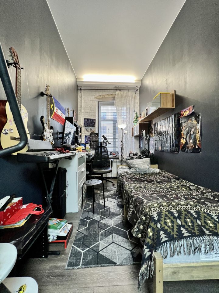 Пять окон в квартире. Зал 18 кв.м, кухня 9 кв.м, Комнаты раздельные 14-12-12 кв.м., санузел совмещенный 6 кв.м., гардеробная в спальне. Водной из комнат- второй этаж.