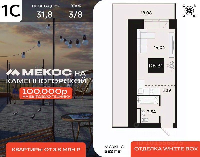Квартира в отделке WhiteBox. Действует акция - квартира в ипотеку без первоначального взноса. В наших ЖК можно купить квартиру от 3.6 млн.р, а на студии сейчас подарок - 100 тыс. руб на покупку бытовой техники.