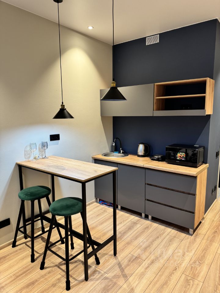 Студия выполнена в современном стиле с качественным евроремонтом. В комнате и на кухне есть вся необходимая мебель для комфортного проживания. Дом находится в отличном состоянии и оборудован двумя пассажирскими и двумя грузовыми лифтами.