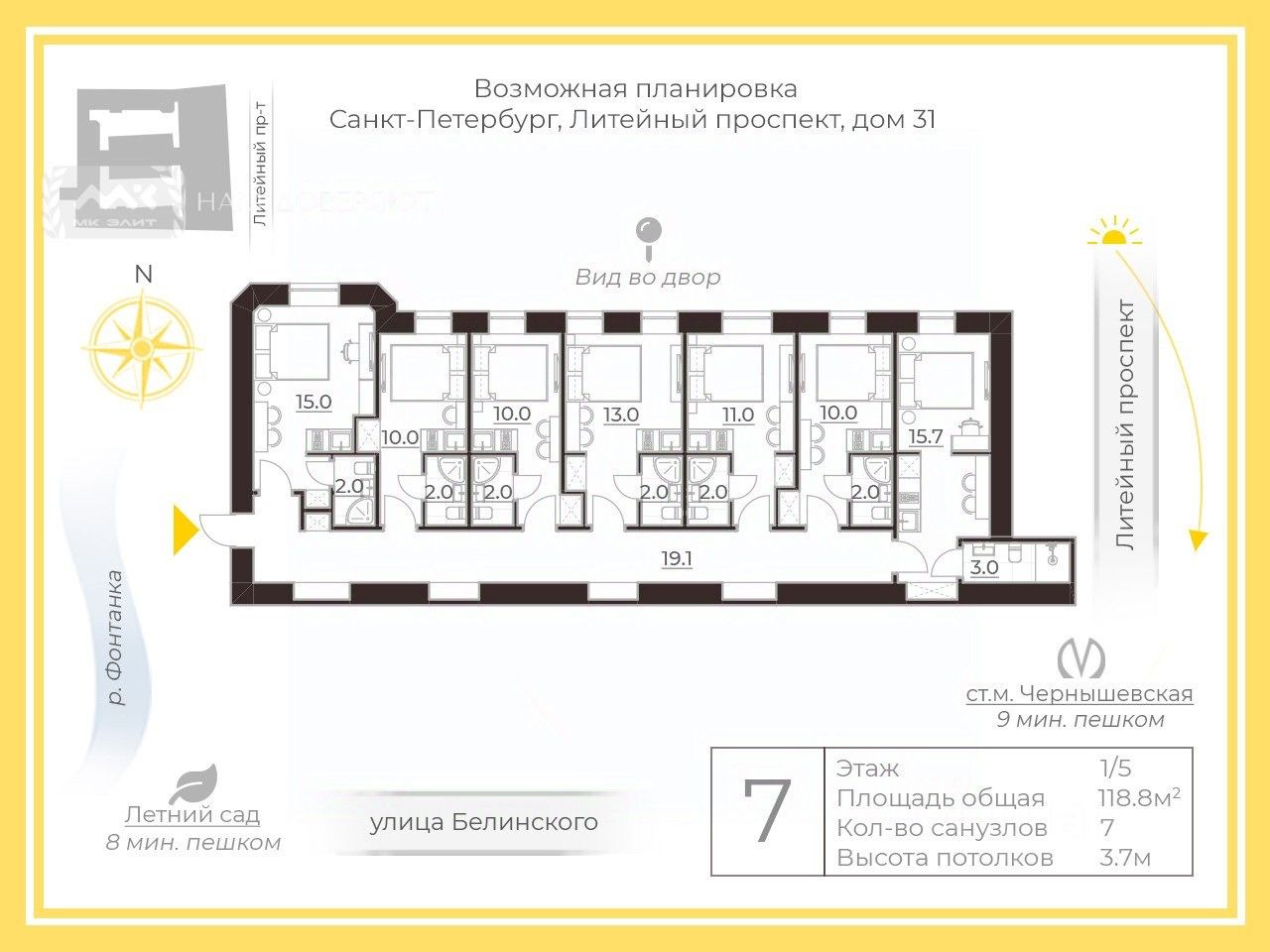 В шаговой доступности музеи, театры, сады. Данная локация обеспечит насыщенную жизнь. Пешком можно прогуляться вдоль Фонтанки, до метро Чернышевская 9 минут.