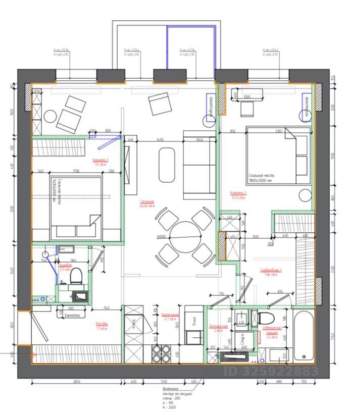 Стрельна'' на 2 этаже. Квартира без отделки, полностью готова к ремонту. Общая площадь: 78,3 кв.м., Комнаты изолированные, все окна выходят на одну сторону. В квартире небольшая веранда, два совмещенных санузла. Высота потолков 2.8 м.