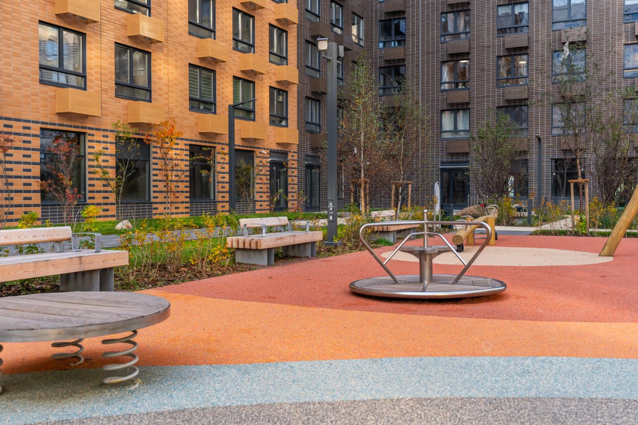 Охраняемый жилой комплекс с круглосуточным видеонаблюдением обеспечит вашу безопасность и спокойствие. Во дворе оборудована охраняемая детская площадка, идеально подходящая для отдыха семей с детьми.