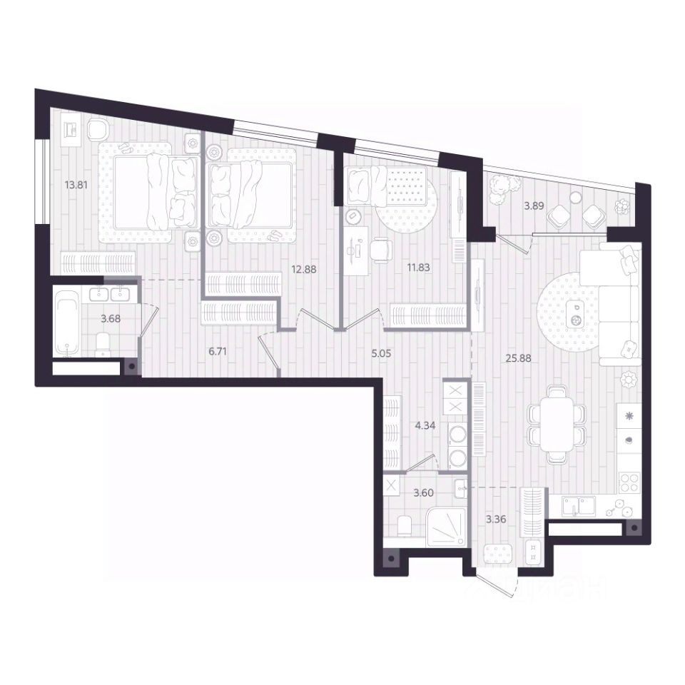 Продаётся 3-комнатная квартира в строящемся доме (Дом 1.1), срок сдачи: II-кв. 2028, общей площадью 93.11 кв.м., на 16 этаже. Новый жилой комплекс ''Тетро'' от застройщика ''Люди'' расположен по адресу: г. Екатеринбург, улица Героев России.