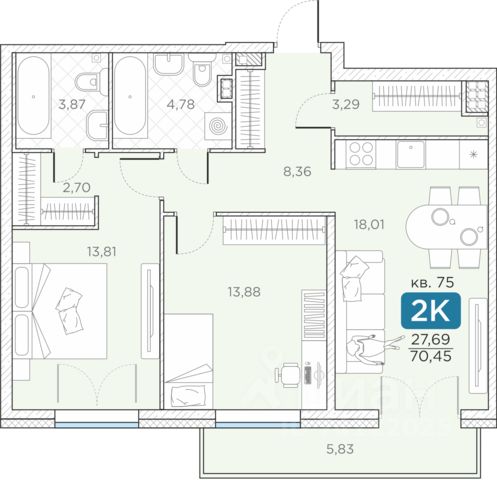 продам 2-к, Новгородская, 1445 088 000 ₽