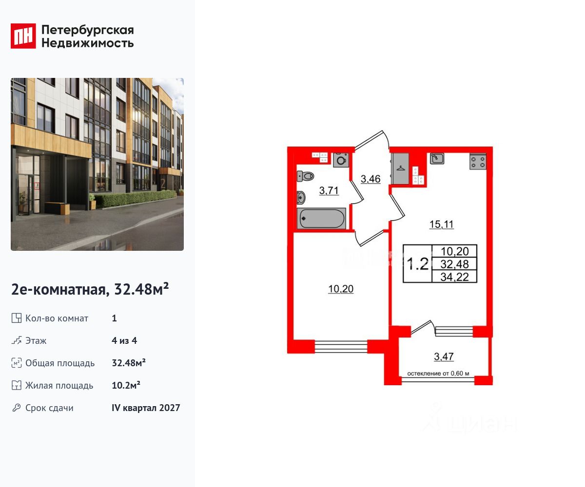 Общая площадь32,48 м2
