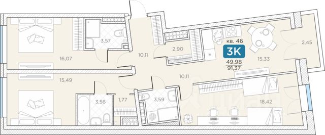 продам 3-к, Новгородская, 1463 045 300 ₽