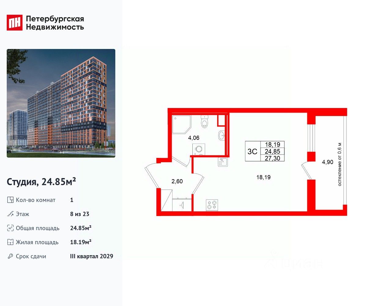 Общая площадь24,85 м2