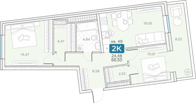 продам 2-к, Новгородская, 1446 882 500 ₽