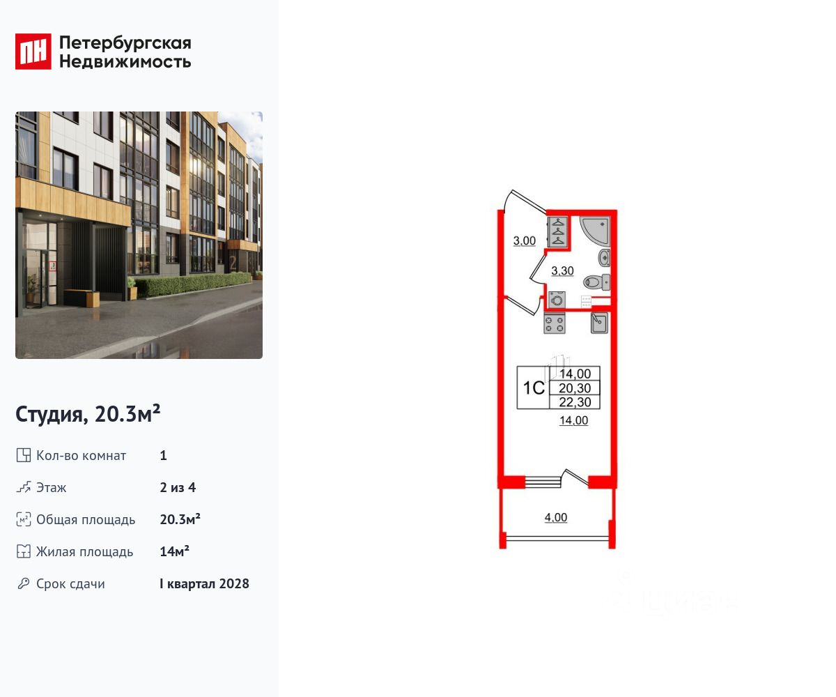 Общая площадь20,3 м2