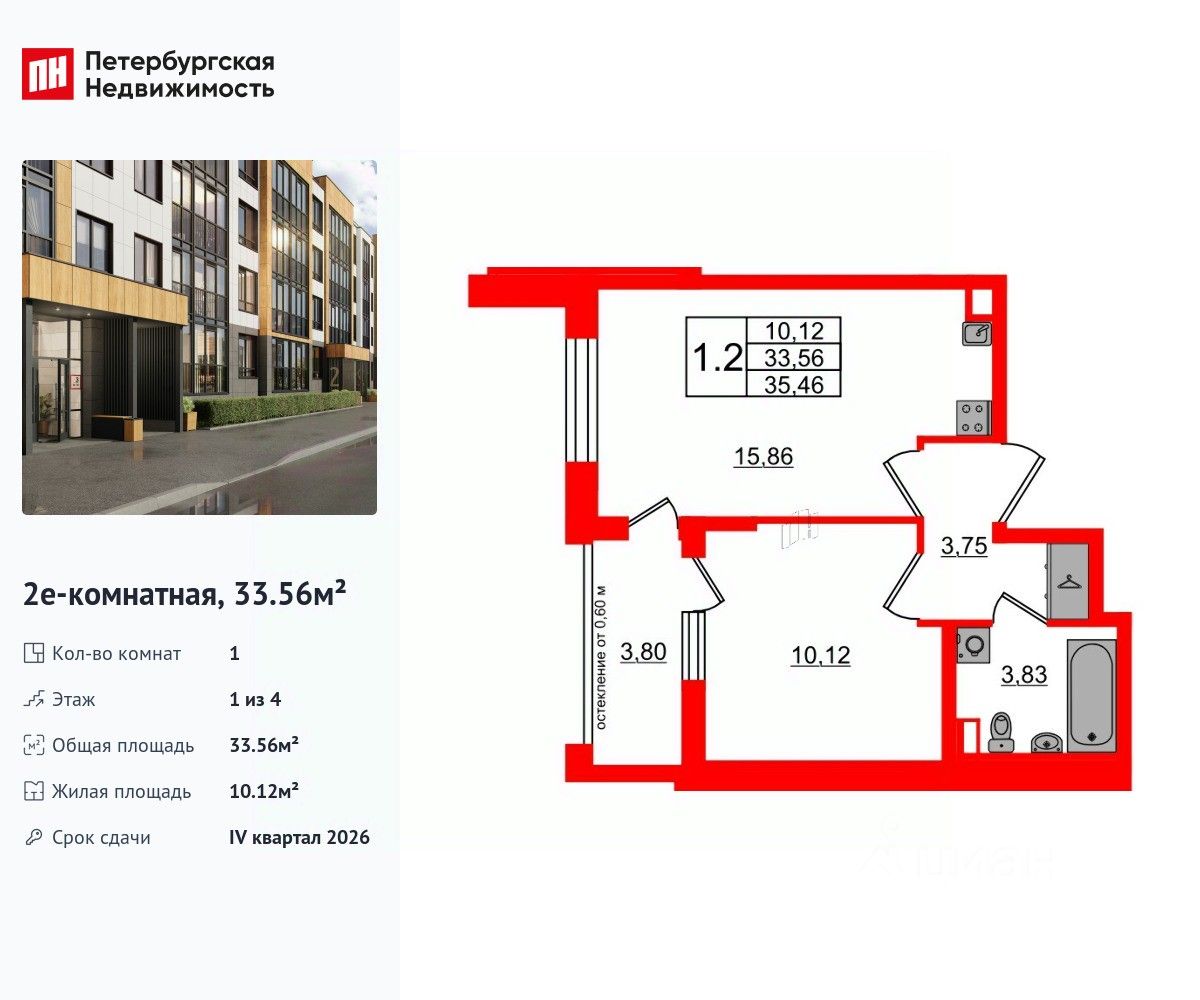 Общая площадь33,56 м2