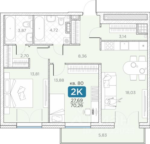 продам 2-к, Новгородская, 1445 669 000 ₽