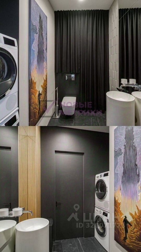 Свой 5,9 м²: Просторная душевая зона, стильная инсталляция, зеркальная стена, много мест для хранения, бойлер для бесперебойного горячего водоснабжения. Гостевой 4 м²: С современной раковиной, инсталляцией и удобной постирочной зоной.