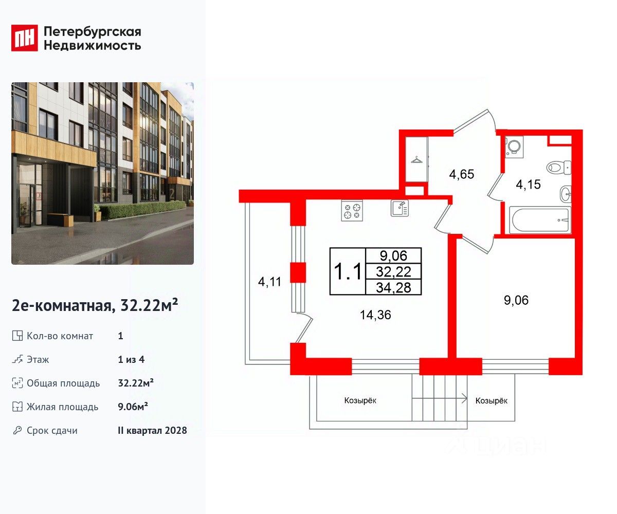 Общая площадь32,22 м2