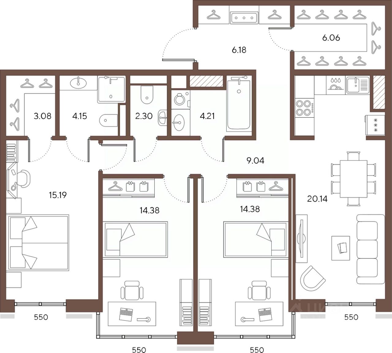 3-комн. квартира от застройщика с предчистовой отделкой в ЖК ''Большой, 67'' на 7 этаже. Общая площадь: 99.8 кв.м., жилая: 43.95 кв.м., площадь просторной кухни-столовой: 20.14 кв.м. Комнаты изолированные, все окна выходят на одну сторону. В квартире один совмещенный и один раздельный санузел. Высота потолков 2.98 м.