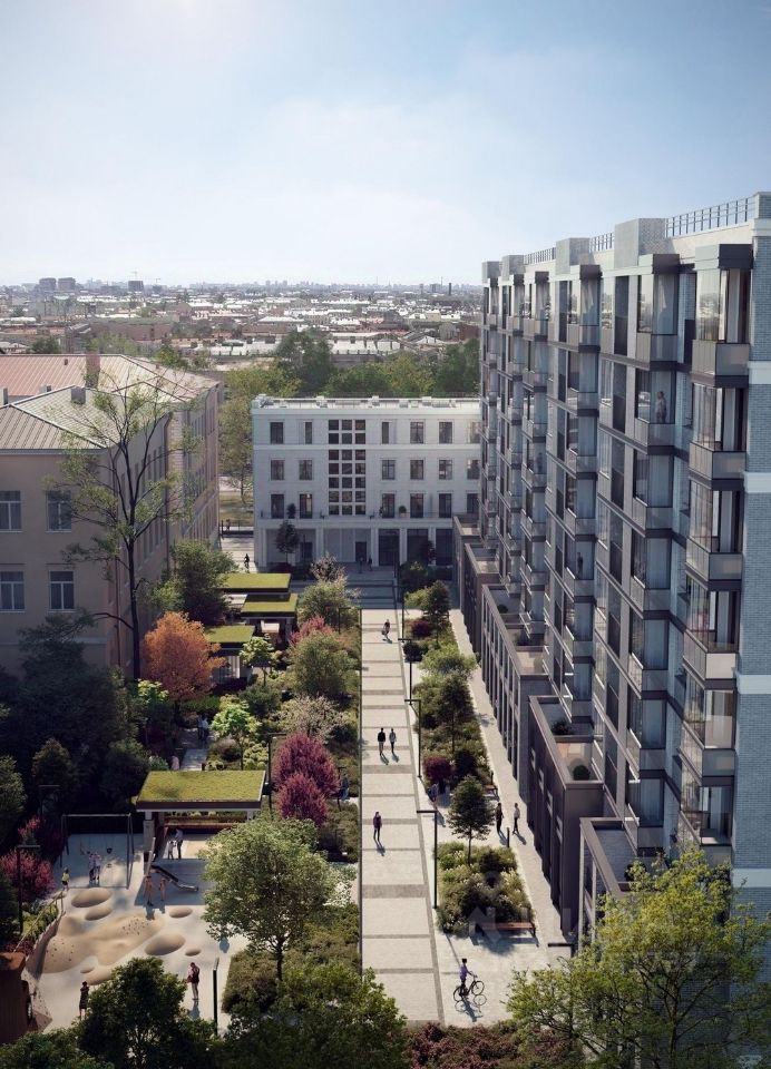 Архитектурное разнообразие фасадов внутри проекта производит впечатление отдельно стоящих уютных домов. Отсутствие многоквартирных блоков подчеркивает камерный характер комплекса.