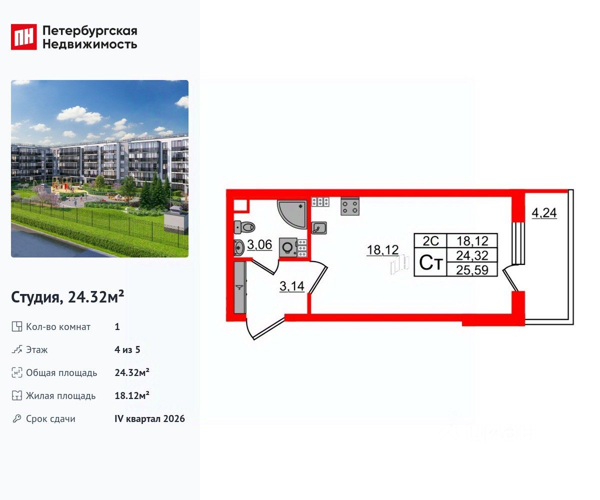 Общая площадь24,32 м2