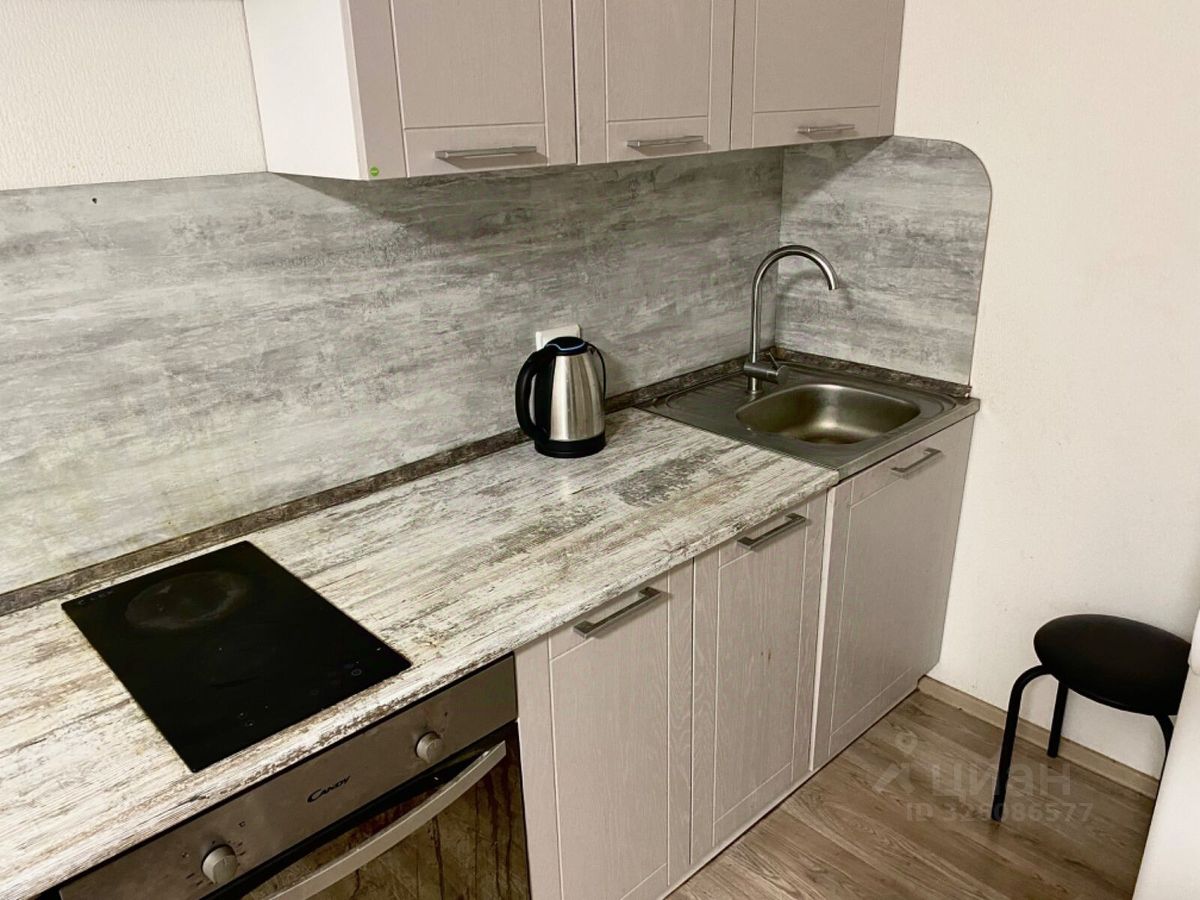 В квартире выполнен косметический ремонт и есть все необходимое для проживания: раскладной диван, стол, кресла, шкаф, комод, кухонный гарнитур, холодильник, варочная панель на 2 конфорки, чайник, стиральная машина.