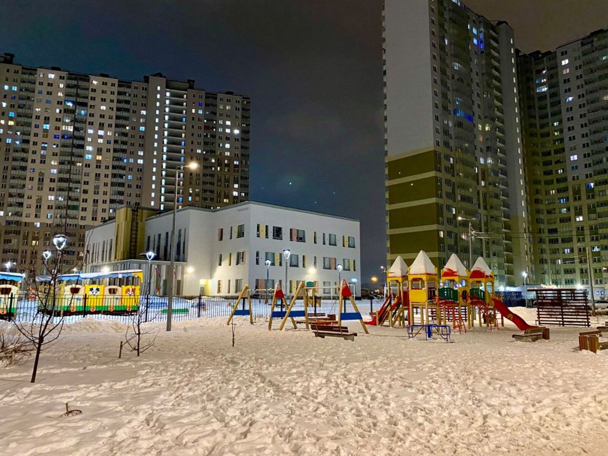 У дома приятный двор, оборудованный скамейками и детскими площадками. Для парковки есть открытые места.