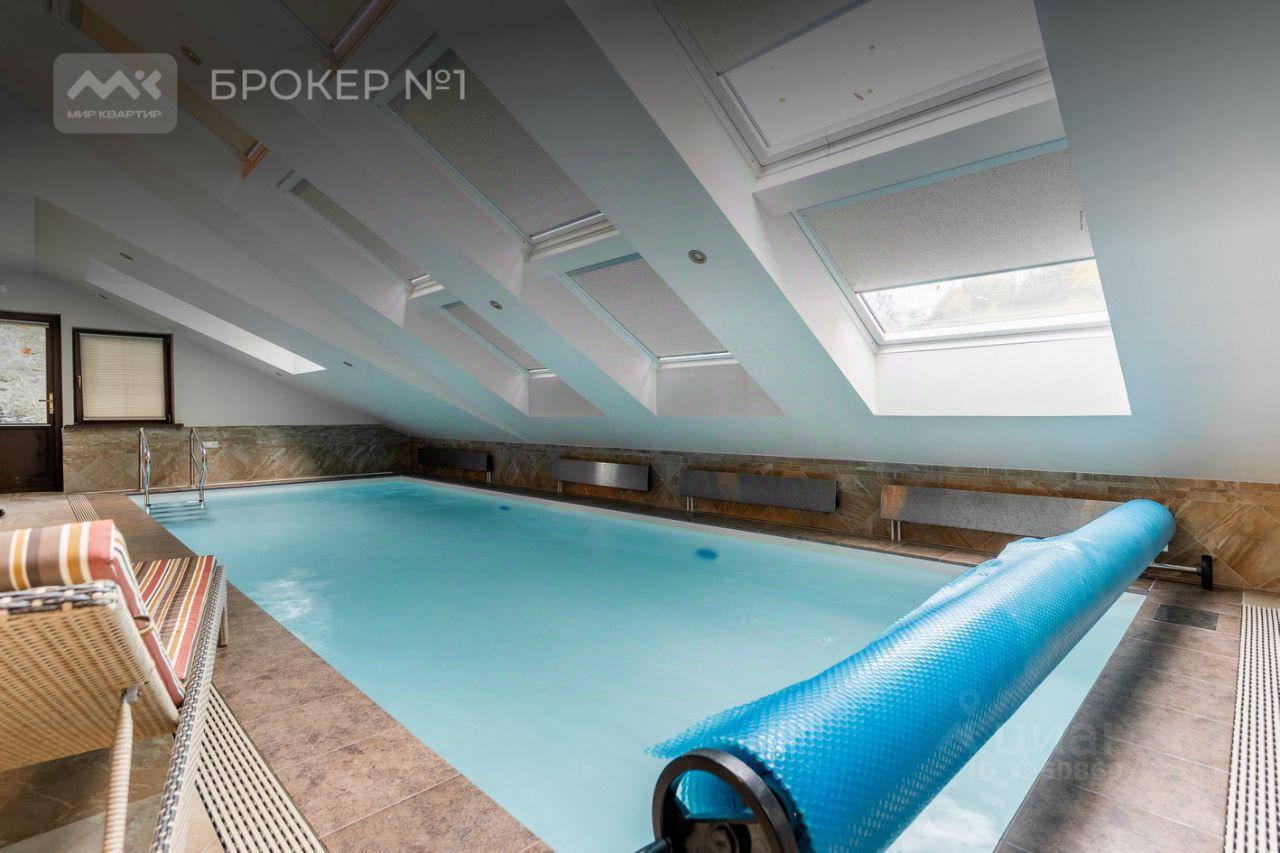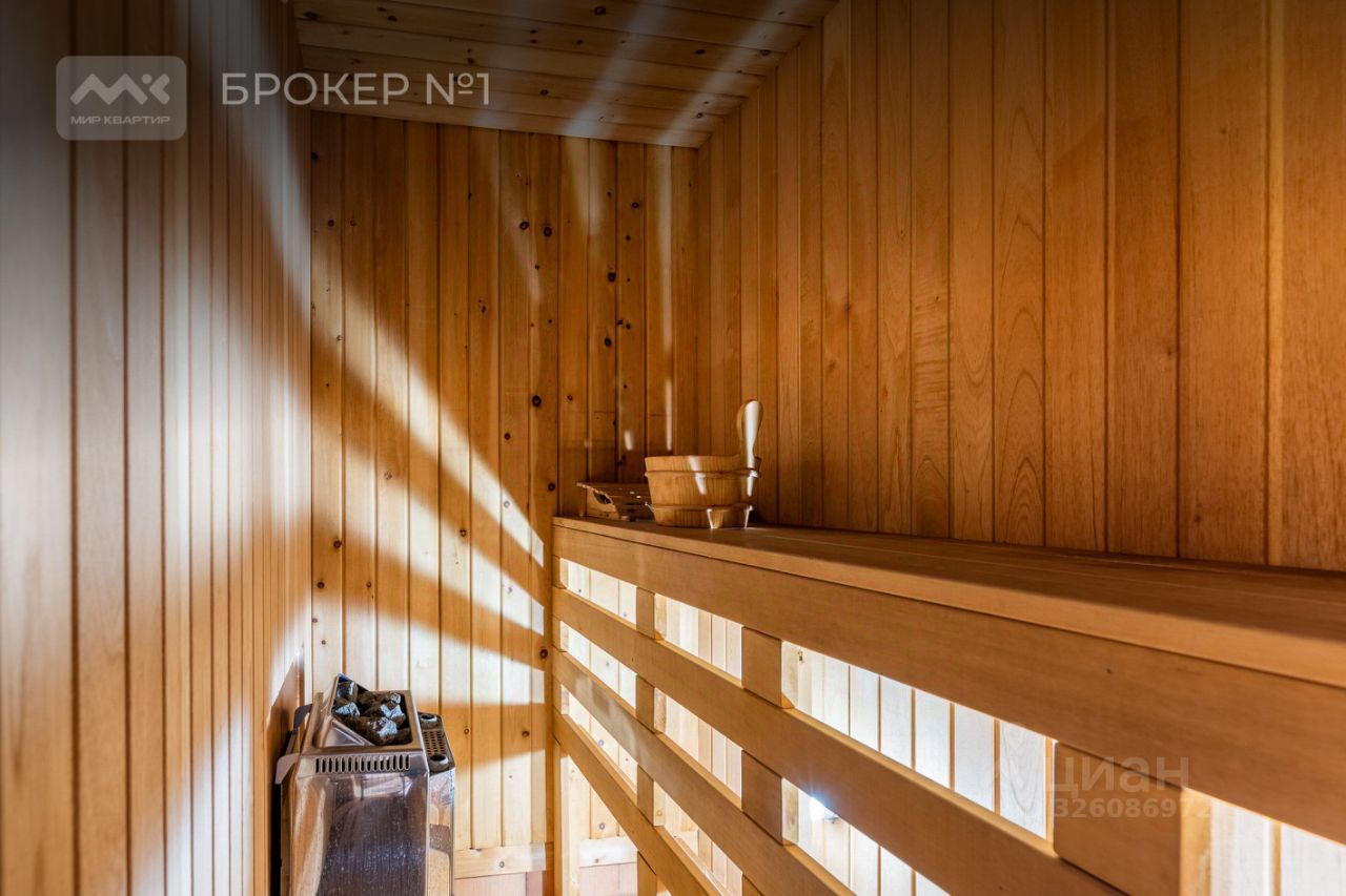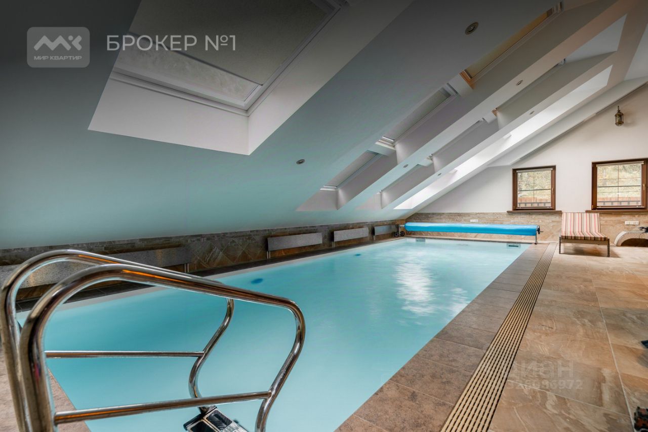 На первом этаже расположена прихожая, две гостевых комнаты, ванная комната, бассейн, сауна, большая гостиная с кухней и выходом на террасу, с видом на лес.