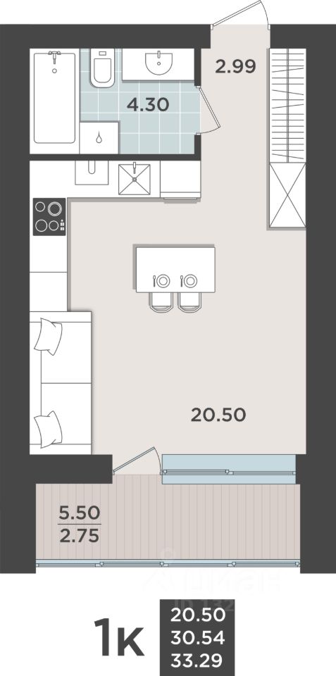Общая площадь30,54 м2