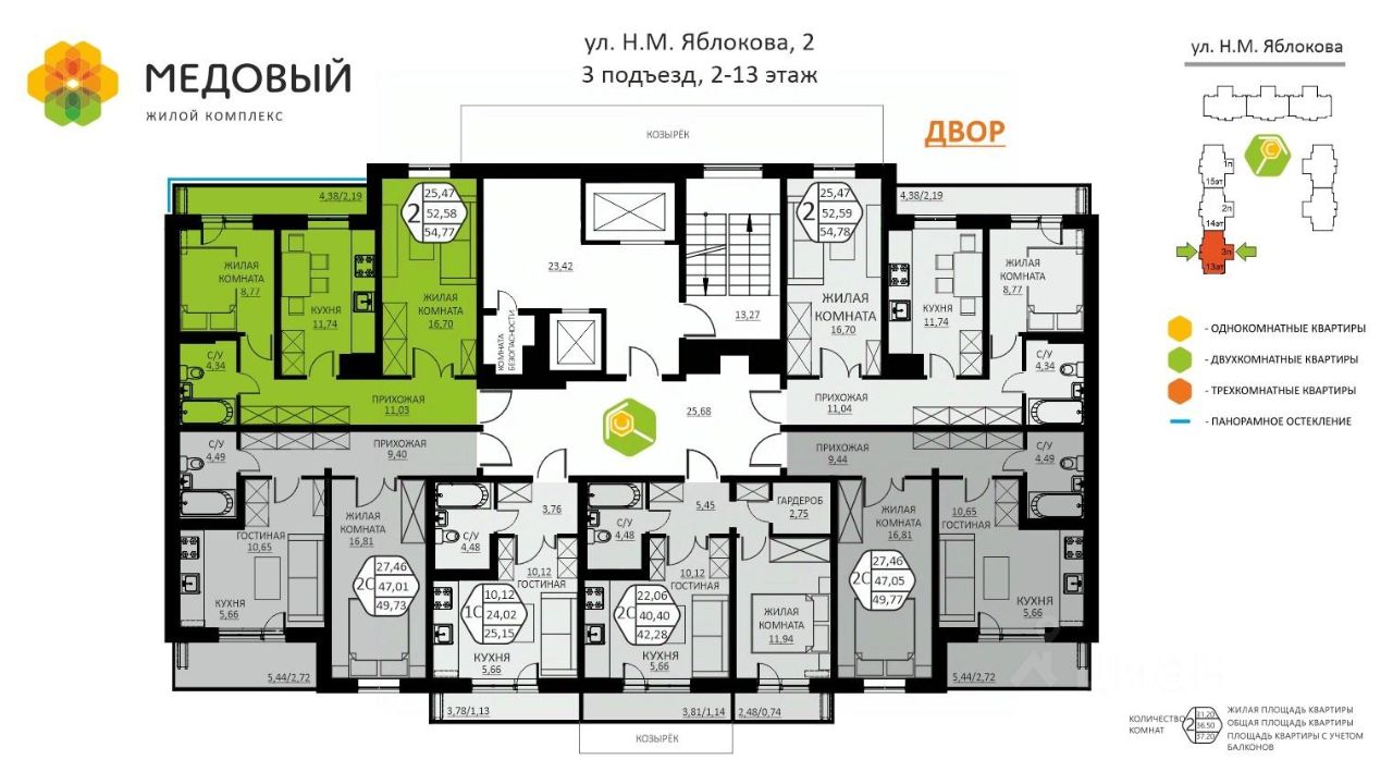 продам 2-к, Яблокова Н.М., 27 662 291 ₽