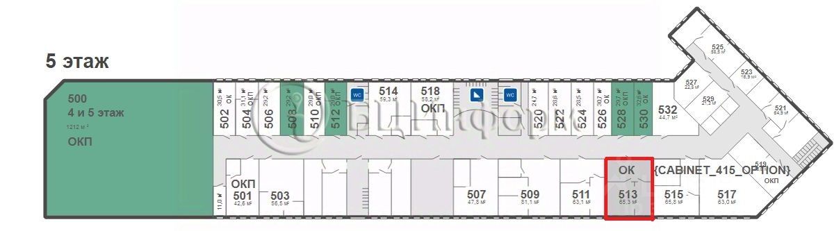 Сдается в аренду офисное помещение 65.3 м2 на пятом этаже. Состоит из двух кабинетов и холла.