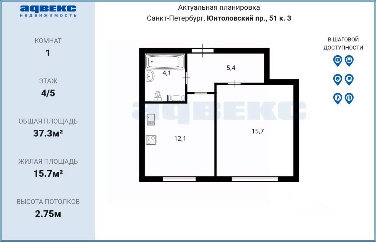 Тёплая и светлая квартира с отличной планировкой! Площадь кухни - 12,1 м, комнаты - 15,7 м, высота потолков - 2,75 м. Пятиэтажный дом, в котором отсутствуют квартиры-студии, построен в 2014 году, оснащен грузопассажирскими лифтами, колясочными и находится недалеко от Лахта Центра. Территория жилого комплекса граничит с Юнтоловским заказником — чистый воздух, прогулочные зоны, экотропы, река Юнтоловка и ощущение комфортной загородной жизни. Дом удачно расположен в глубине квартала, это обстоятельство обеспечивает тишину и спокойствие в квартире. Хорошие соседи!