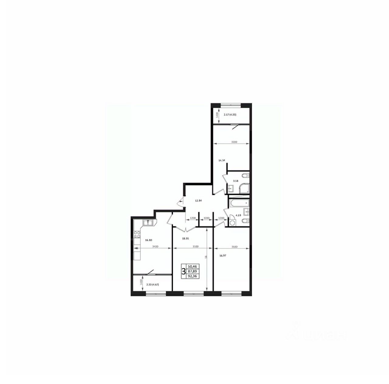 Общая площадь92,36 м2